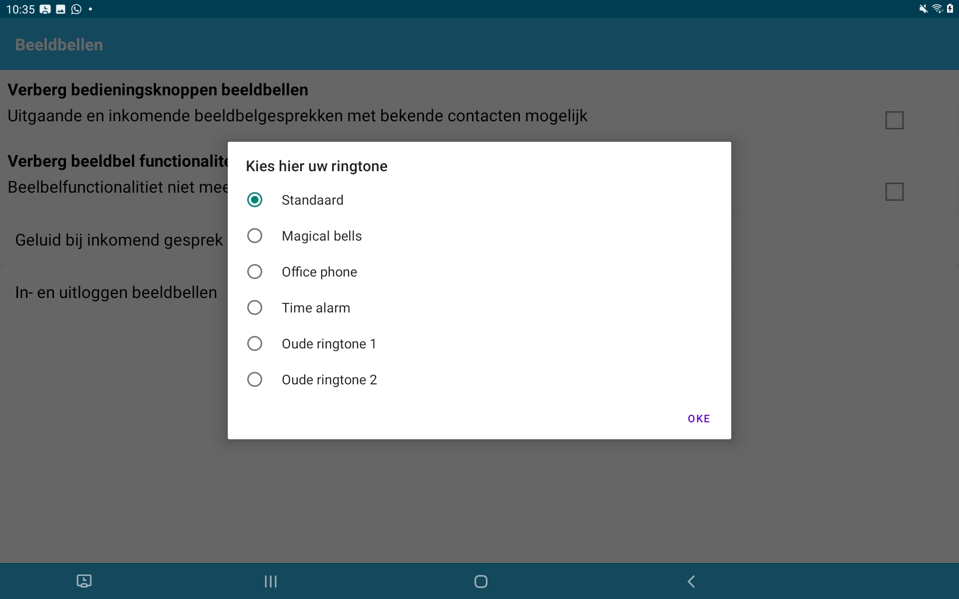 Je kunt op de Dagwijzer kiezen uit 6 verschillende ringtones voor inkomende beeldbelgesprekken. Dit doe je door naar beeldbel instellingen te gaan en vervolgens op “Geluid bij inkomende gesprek” te klikken en de gewenste ringtone uit te kiezen.