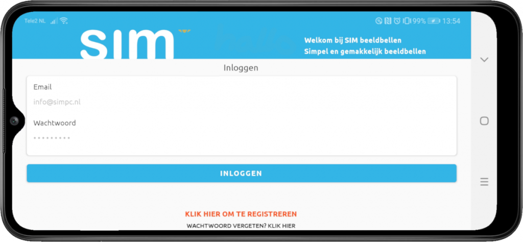 Alleen bij SIM geregistreerde gebruikers kunnen beeldbellen met de Dagwijzer, daarom dien je jezelf eerst te registreren bij SIM Beeldbellen.